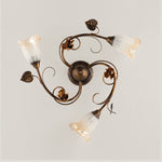 Iron ceiling light Brown Gold with White Amber glasses three lights 58x h15 cm