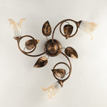 Iron ceiling light Brown Gold White Amber glasses three lights 59x h20 cm