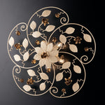 Ceiling lamp in ivory lacquered iron with 5 lights gold decoration