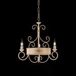 Ivory lacquered iron chandelier with 3 lights decape decoration with friezes