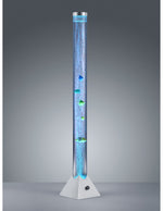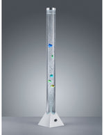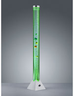 La lampada da terra MOTION di Trio Lighting è composta da una struttura cilindrica in plastica finitura titano e diffusore in plastica trasparente, interruttore a filo incluso. All'interno del diffusore cilindrico pesciolini colorati galleggianti.