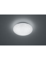 The PUTZ ceiling lamp by Trio Lighting has a round structure made of plastic with a white glitter finish with a diameter of 37 cm.