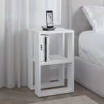 This white bedside table, known as Lonie, is designed to seamlessly fit into any room in your home. Its versatile design allows it to be used as a side table as well.