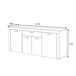 Sideboard with four doors and a drawer in a contemporary and very functional style. Very large and well organized compartments; the ABS edges guarantee longevity to the cabinet.