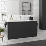 Mango100 matt black suspended bathroom cabinet with 2-drawer washbasin 100x45x54h