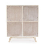 structure in mango wood, back in mdf. nitrocellulose-based paint with light white pickling. decoration with hand made inlays. brass knobs. feet to be assembled.