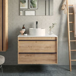 Suspended bathroom furniture Nuar80 ostippo oak countertop washbasin 2 drawers 80x45x54h