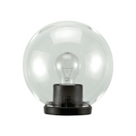 This pole head lantern features a 60 watt globe and has a diameter of 30cm. Its elegant and refined design in black with a transparent sphere adapts perfectly to any type of outdoor environment.