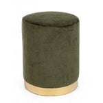 Green velvet effect pouf with gold band cm 35 x 40 h