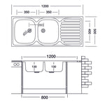 Two bowl kitchen sink with left steel drainer 50x120 cm (N127SX)