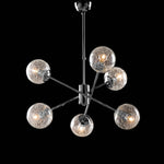 Suspension lamp in polished chrome iron with 6 lights with glass spheres