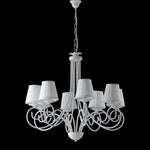 Suspension chandelier in white iron shabby white lampshades eight lights 67x h68 cm