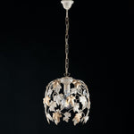 Hanging chandelier in light gold ivory iron and rhinestones one light 30x h37 cm