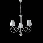 Suspension chandelier in white iron shabby white lampshades three lights 50x h60 cm