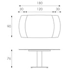 White extendable table 90 cm x 120-180 cm H. 76 cm