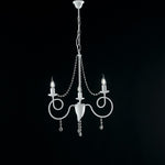 White iron chandelier three lights shabby decoration and rhinestones 50x h67 cm