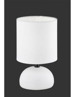 The LUCI table lamp by Trio Lighting is composed of an entirely white structure, with a ceramic base and a white fabric lampshade, diameter 14 cm. On/off switch on cable.