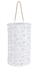 White hexagonal wooden lantern 60h cm