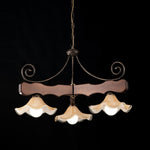 Antique Walnut wood and iron chandelier three lights glass lampshades 80x h50 cm